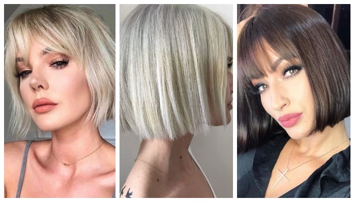 Один из самых аккуратных, элегантных и стильных вариантов каре - прямые волосы до подбородка и легкая прямая челка до бровей. Эта стрижка универсальна и отлично омолаживает.