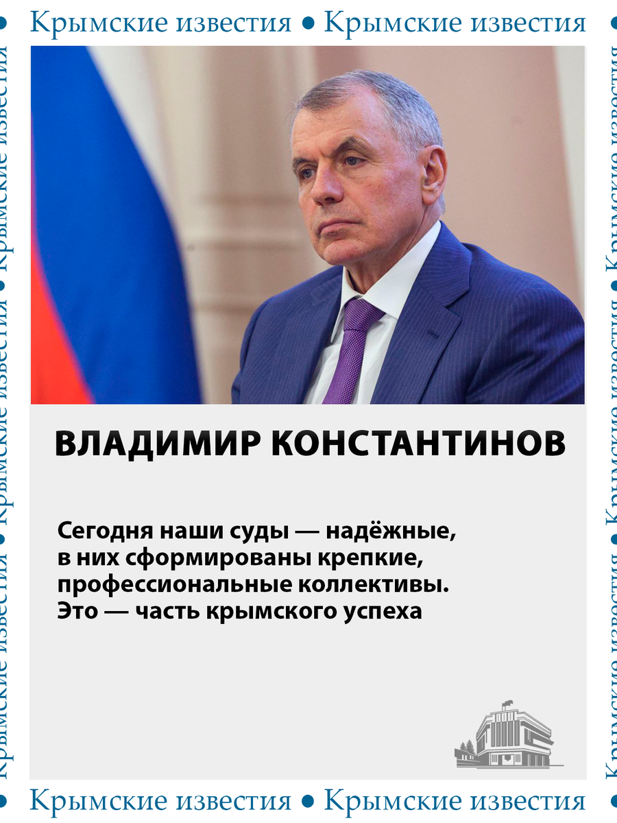 10 лет назад в Крыму начали работать федеральные суды. «Россия дала нам не только современную материально-техническую базу, но и внутреннюю силу, стабильность, уверенность в нашем будущем, чего мы были лишены до 2014 года», – заявил Владимир Константинов. Он отметил, что в течение 10 лет с момента воссоединения с Россией, каждый способствовал развитию Крыма. И современные успехи республики – это общие достижения всех ветвей власти.