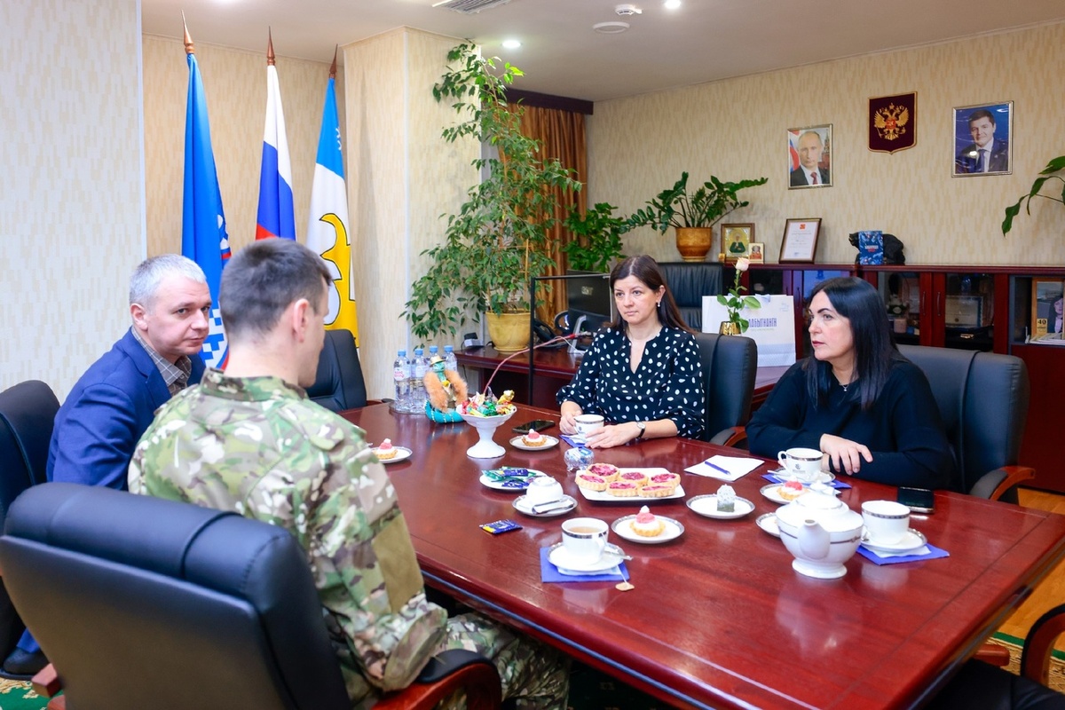 Службу по контракту в зоне спецоперации лабытнанец проходит с 2023 года, он командует взводом, где служат ребята из Салехарда, Тазовского и Ямальского районов. С линии соприкосновения, привёз особо ценный подарок – полковое знамя. Обратно увезет с собой письма с тёплыми пожеланиями, написанные школьниками города. За чашкой чая члены местного политсовета партии «Единая Россия» встретились с военнослужащим СВО, приехавшим в отпуск с передовой. В ходе встречи поговорили о помощи, которую ямальцы оказывают воинам СВО. В течение нынешнего года, лабытнангцы отправили в зону спецоперации более 10 тонн гуманитарного груза. Дома военнослужащего ждут жена и маленькая дочь. Член регионального политсовета партии, градоначальница Марина Трескова отметила, что город готов оказать семье бойца любую необходимую помощь. «Особая сердечная благодарность – нашим героям, которые мужественно и самоотверженно приближают победу в зоне СВО. Мы ждём их домой живыми и здоровыми! И знаем: победа будет за нам