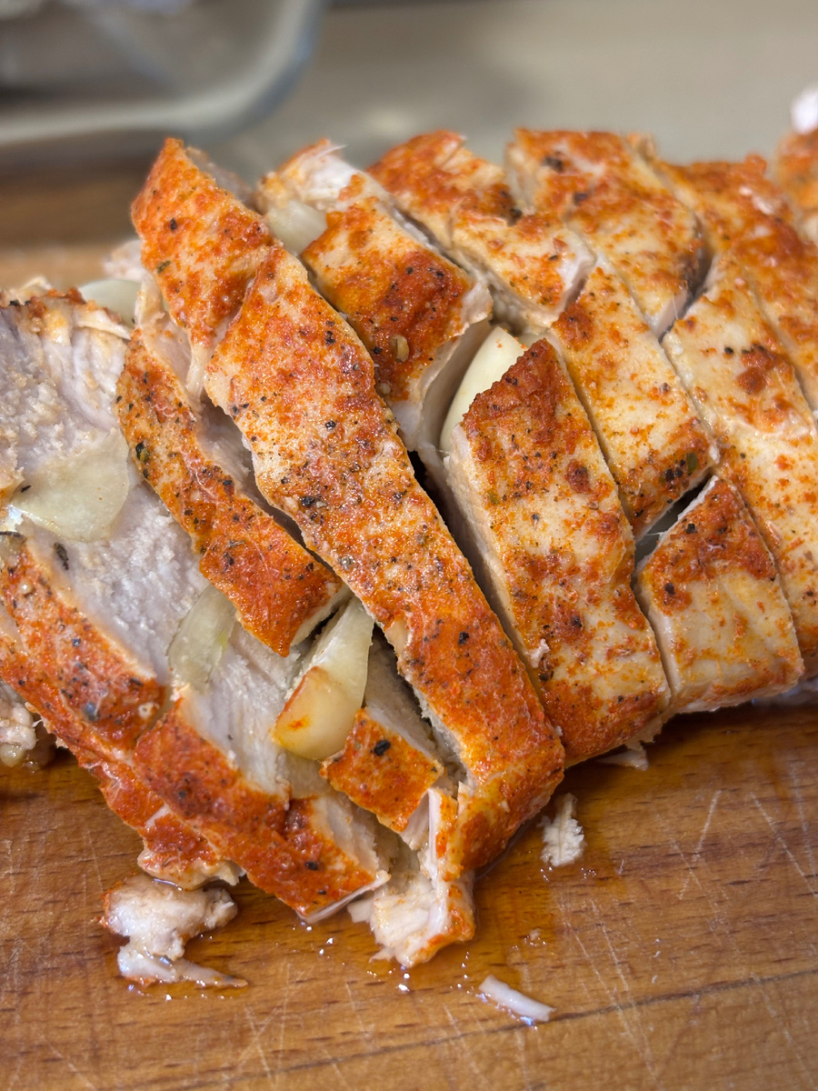 Простой, быстрый, пошаговый рецепт Подготовьте ингредиенты: ✅филе индейки 500 гр ✅чеснок 6 зубчиков ✅соль 1/2 чайной ложки ✅перец черный свеже молотый 1/2 чайной ложки ✅сладкая паприка 1 чайная ложка Шаг 1 Разрежьте зубчики чеснока на половинки по вдоль. Шаг 2 В индейке сделайте небольшие отверстия ножом и вставьте в них чеснок. Шаг 3 Натрите индейку солью, перцем и паприкой. Шаг 4 Заверните индейку в 2 слоя фольги и отправьте в разогретую до 180 градусов духовку на 40 минут #foodблогер #еда #рецепты #индейка #индейкарецепт