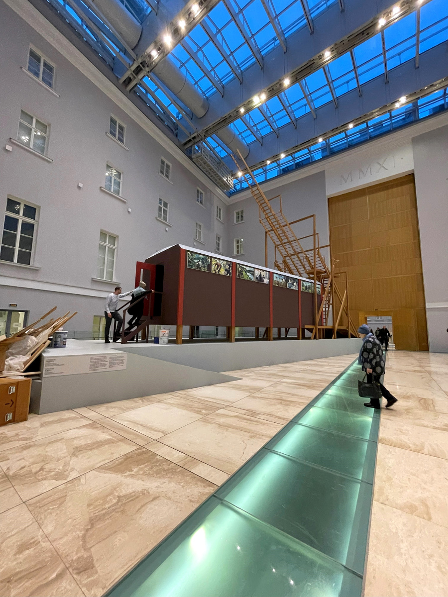 Продолжаем нашу экскурсию по Главному штабу. Сегодня начнём с этого просторного помещения, где находится инсталляция «Красный вагон» Ильи и Эмилии Кабаковых.
