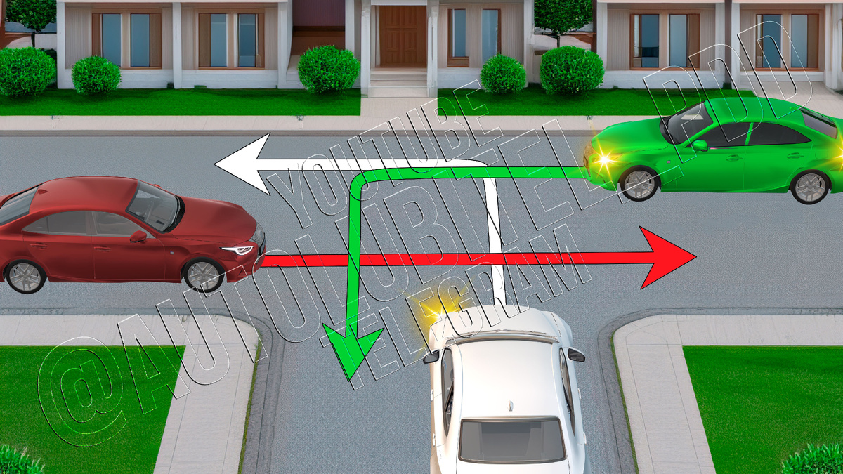 Всем привет, уважаемые автолюбители! Мы продолжаем серию разборов интересных дорожных ситуаций. Сегодня я вновь подготовил для вас сложную задачу на тему очерёдности проезда перекрёстков. О сложности этой задачи свидетельствует низкий процент правильных ответов, выявленный в ходе предварительного опроса: только 29% голосовавших смогли правильно решить задачу. Предварительные опросы я провожу в своём Telegram-канале, там регулярно выходят новые и, главное, оригинальные задачи на тему ПДД. Подписывайтесь и решайте задачи вместе! А в данной задаче необходимо выяснить, Кто первым проедет через данный перекрёсток? Вариант №1 - Белый автомобиль Вариант №2 - Красный автомобиль Вариант №3 - Зелёный автомобиль Вариант №4 - Проедут по договорённости Правильный ответ вы найдете после разбора задачи, но не спешите в него подглядывать. Попробуйте самостоятельно решить задачу, а лишь потом сверяйтесь с правильным ответом. На картинке с заданием мы видим три легковых автомобиля, которые одновременно