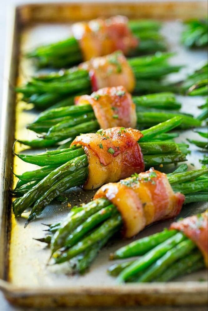 Подавайте пучки зеленой фасоли с беконом горячими, посыпав солью и перцем по вкусу.