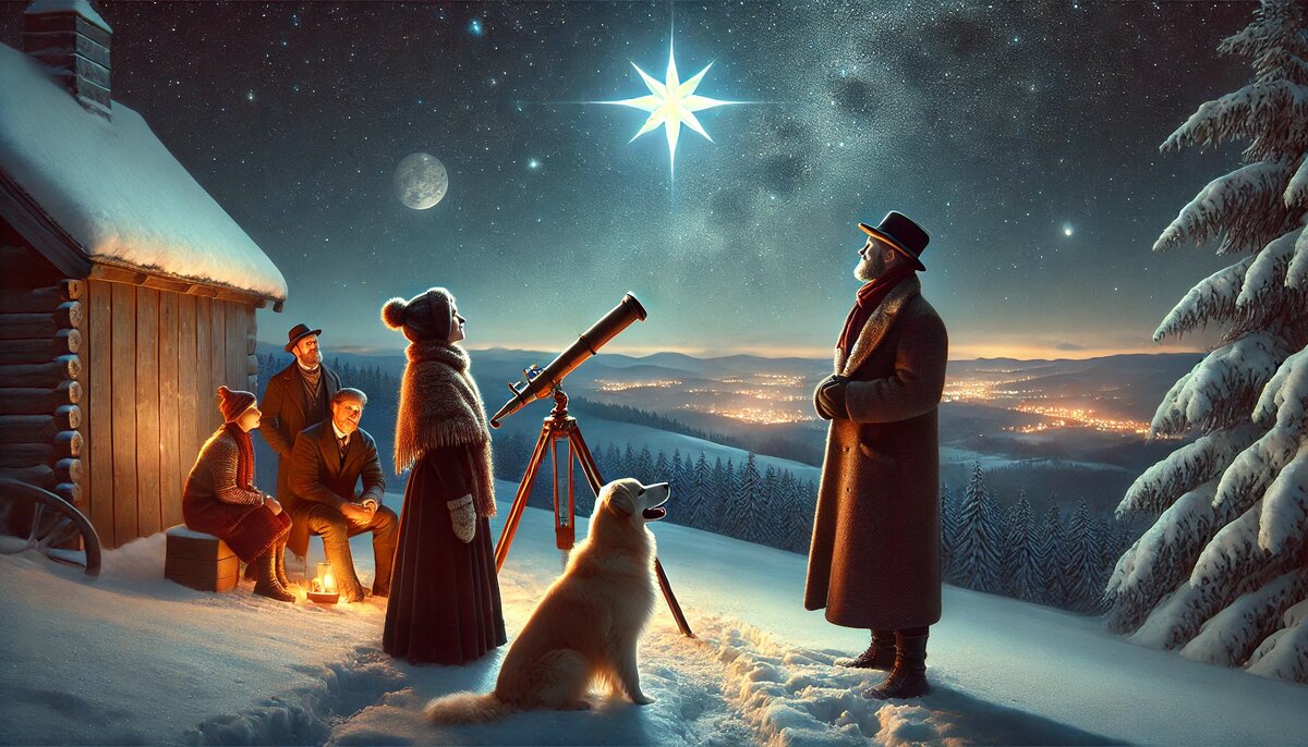 В маленьком городке на северном побережье, где зимой небо кажется ближе, чем земля, жила женщина по имени Анна. Её жизнь была словно плоская линия: дом, работа в местной библиотеке и вечерние прогулки с овчаркой по имени Шелли. Ей исполнилось тридцать пять, и каждый из этих лет был наполнен тихим одиночеством, как книга без читателя. Анна не была несчастной. Ей нравились запах старых книг, шерсть Шелли под рукой и горячий чай с корицей по вечерам. Но в глубине души она чувствовала, что чего-то не хватает, словно последняя страница её собственной истории потерялась. Однажды, за неделю до Рождества, Анна заметила объявление на доске у входа в магазин. В объявлении говорилось, что местный астроном-любитель будет проводить экскурсию на вершину холма, чтобы наблюдать за "Рождественской звездой" — редким небесным явлением, которое не появлялось уже двести лет. — Ты должна пойти, — сказала соседка Анны, бабушка Вера, заметив её раздумья. — Это знак. Анна усмехнулась, но всё-таки записалась.