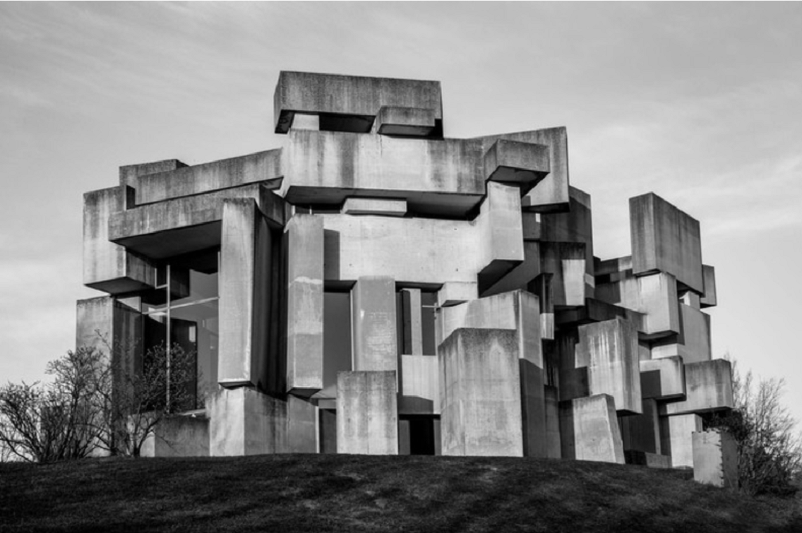 Скульптор создал максимально уродливое здание храма из 152 серых бетонных блоков, которые нагромоздил один на другой, как будто они разом свалились с неба.