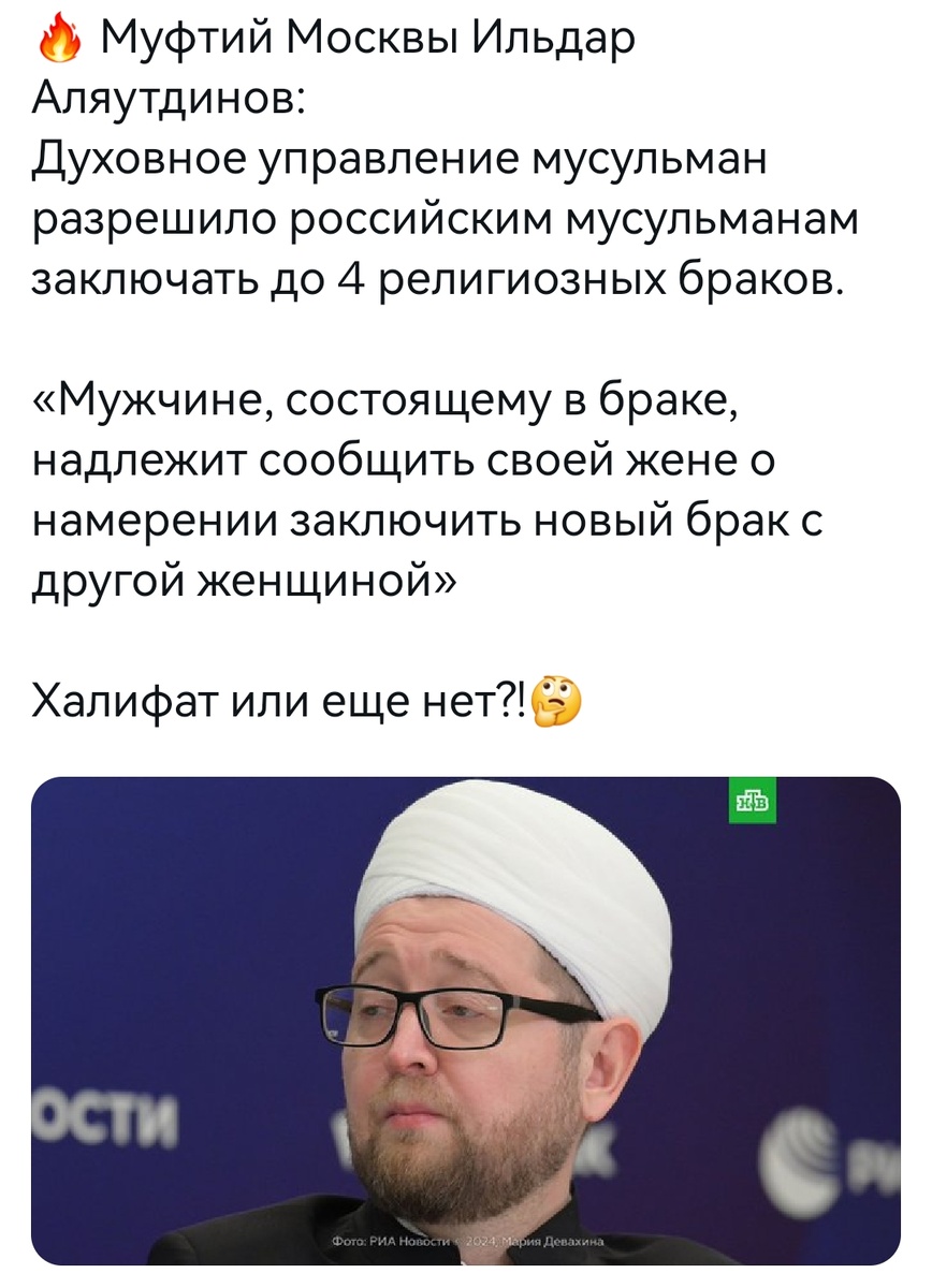 Имам устроил гнилую провокацию, когда сделал вброс о том, что мусульманам надо и можно иметь много жён.