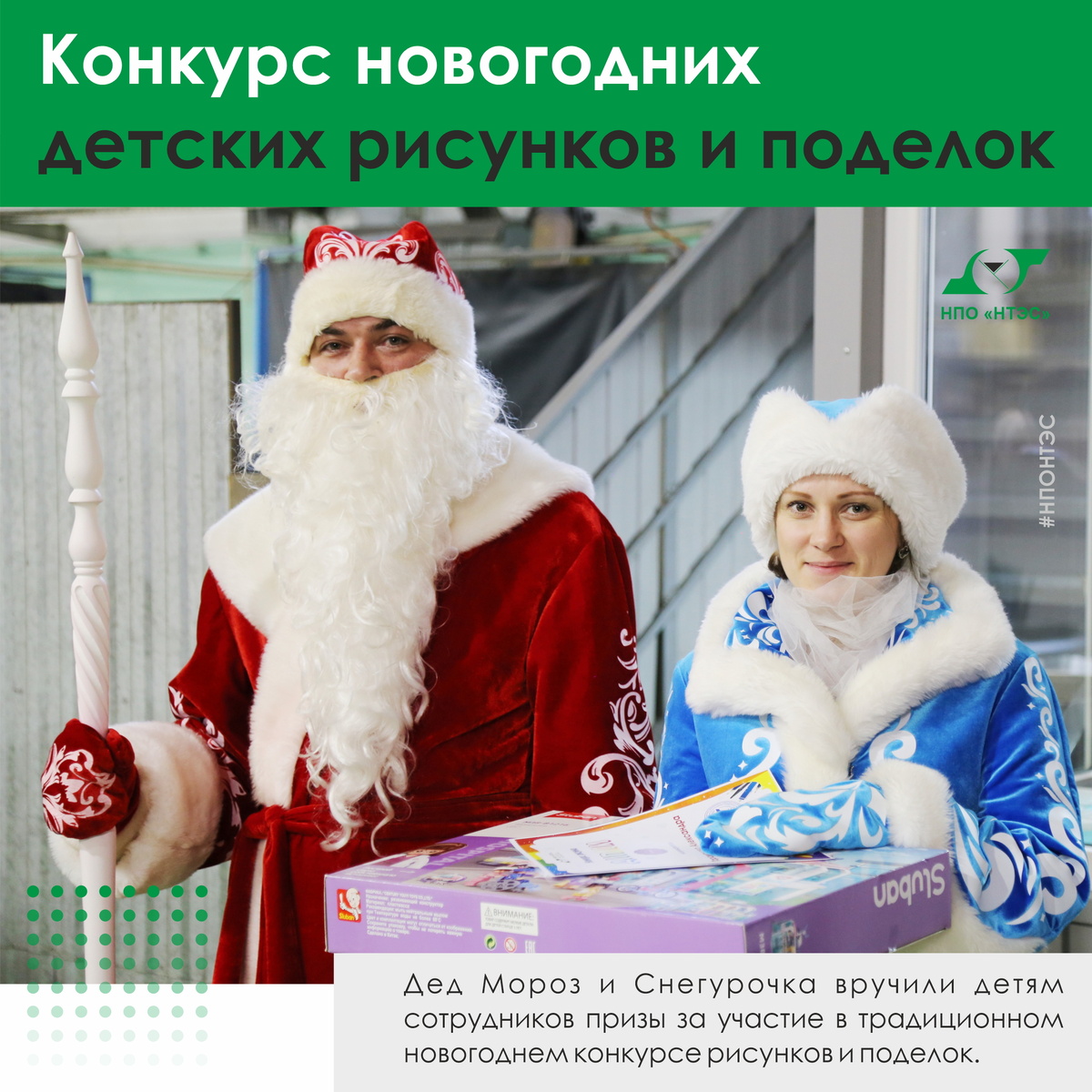 Всего на конкурс было представлено 100 творческих работ. Жюри было сложно определить лучших среди них, так как все работы были выполнены с душой и большим усердием. Тем не менее, победители были выявлены. Дед Мороз и Снегурочка вручили детям сотрудников заслуженные дипломы и ценные призы. А поделки украсили главную новогоднюю елку компании! https://nponts.ru
