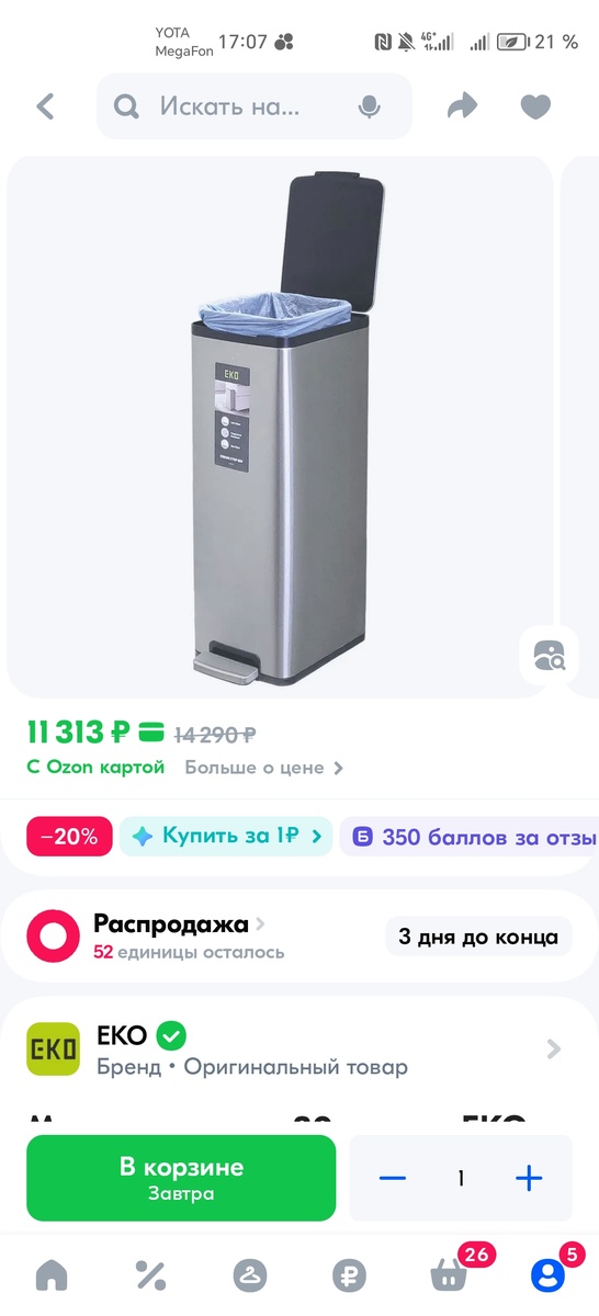 Честно. С первого взгляда. Посмотрела и пропала. Хочу не могу. Но цена у него конечно.. Валя говорю, если ты мне еще не купил очередные золотые цацки, не покупай. Купи мне на новый год ведерко мусорное, краше которого нет на всем белом свете. Посмотрел муж на ведро, руками замахал, закричал- В уме ли ты баба?!!!! Видано ли дело столько грошей за ведро помойное выкидывать. Оно ведь даже не умное. 🤣 Никаких тебе батареек, сенсоров и прочего. Не хочу говорю батареек. Такое вот хочу. Дорогое и глупое ведерко. Покачал головой муж и уехал, наверное на ведро мне зарабатывать. 😁 Ну реально , по моему мнению оно шикарно. И наш волосатый демон, (который котик ) туда не залезет и не опрокинет. А то очень любит он это дело. Даже если ничего там "вкусного" нет, обязательно залезет и перевернет. За одно это ведро уже любви заслуживает. 😁 А пока в мечтах о ведре витая, сходила я в Озон и забрала там горшки для цветов . Ну это восторг какой-то , а не горшки. 👍 Красивенные!!!! Дырявить