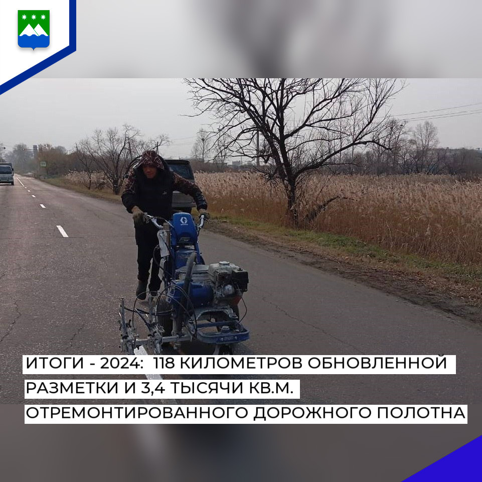 Итоги - 2024: 118 километров обновленной разметки и 3,4 тысячи кв.м. отремонтированного дорожного полотна