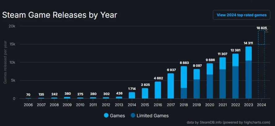 2024 год оказался рекордным для платформы Steam — за 12 месяцев было выпущено 18 825 игр. Это значительное увеличение по сравнению с предыдущим годом, когда в 2023 году пользователи получили доступ к 14 311 новинкам. Такой прирост в числе релизов лишь подтверждает, что индустрия игр продолжает активно развиваться, предлагая пользователям всё больше контента. Наибольшей популярностью среди жанров в этом году пользовались экшены — их вышло более 7 тысяч. Они остаются фаворитами среди игроков, благодаря чему разработчики продолжают активно выпускать игры в этом жанре. Интересно, что октябрь 2024 года стал самым насыщенным месяцем для релизов — за этот период в Steam появилось 1 901 новая игра. Многие геймеры нередко утверждают, что им «не во что играть», но статистика SteamDB доказывает обратное. Несмотря на кажущуюся тишину, последние месяцы года принесли множество ярких анонсов, громких блокбастеров и приятных сюрпризов для любителей ПК-игр. Такой результат говорит о том, что Valve прод