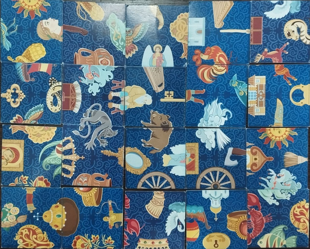 Символы: петух, олень, старик, чёрт, кабан, ветер, зеркало, тиара
