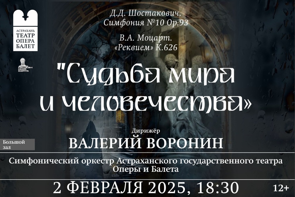 2 февраля 2025 года Астраханский государственный театр оперы и балета станет сценой для грандиозного симфонического концерта «Судьба мира и человечества». В этот вечер прозвучат произведения двух известных композиторов – Вольфганга Амадея Моцарта и Дмитрия Шостаковича. Программа обещает подарить слушателям погружение в музыкальные миры двух разных эпох. Первая часть вечера будет посвящена Десятой симфонии Шостаковича – произведению, которое сам композитор называл итогом «летописи трагической эпохи». Симфония, впервые прозвучавшая в декабре 1953 года в Ленинграде, стала символом борьбы и внутреннего напряжения, отражая сложные размышления Шостаковича о переломной эпохе. Написанная долгое время после пресловутого Постановления 1948 года, она стала ответом на испытания, через которые прошел композитор. Во второй части концерта исполнится величественный «Реквием» Моцарта для солистов, хора и оркестра. Это произведение до сих пор вдохновляет музыкантов и остается окутанным тайной. Моцарт вы