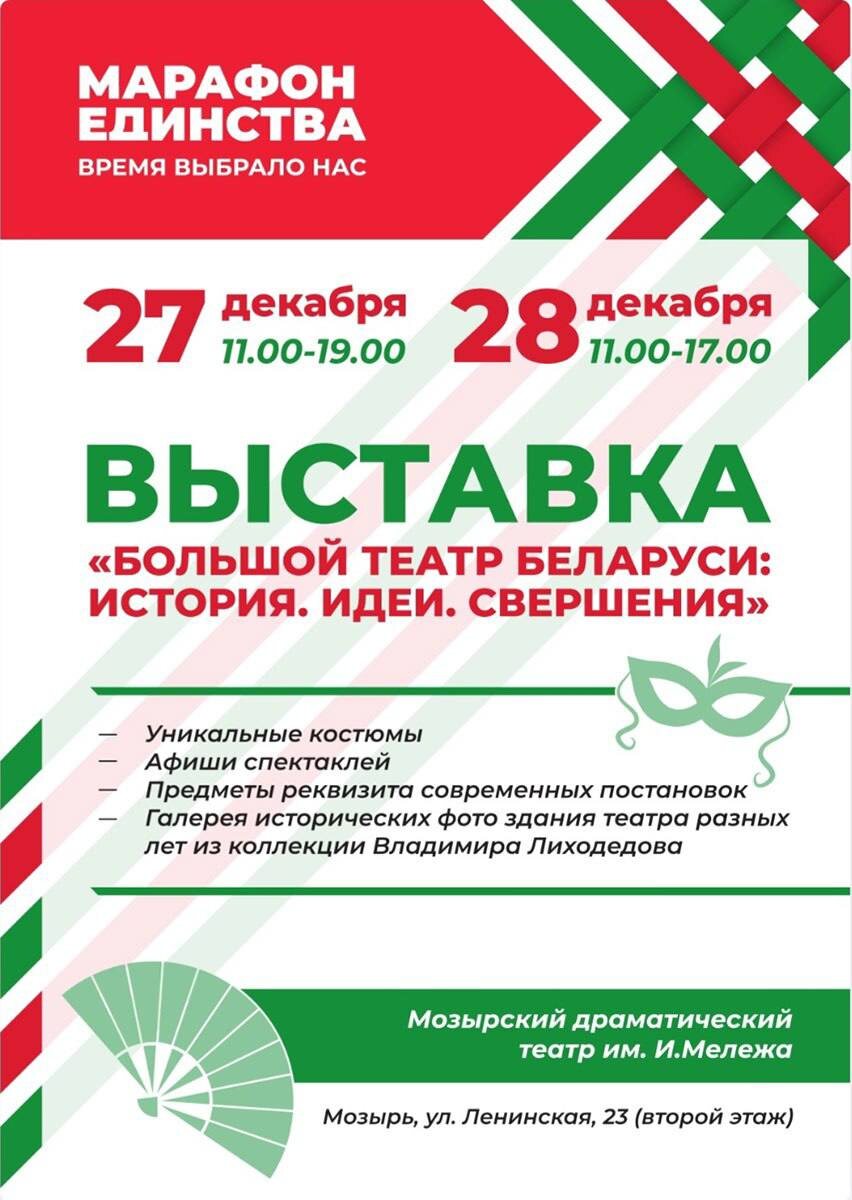 Ведущие мастера сцены Большого театра Беларуси проведут мастер-классы в Мозыре В рамках Марафона единства артисты Большого театра дадут практические советы, выступив в ГДК. Мастер-класс по классическому танцу проведет народная артистка Беларуси, прима-балерина Ирина Еромкина, а по современному – хореограф-постановщик Анастасия Голешева. Солисты оперы и оркестра продемонстрируют свое мастерство в музыкальном колледже. Среди них – заслуженные артистки Беларуси Оксана Якушевич и Татьяна Третьяк, концертмейстер Ирина Бутель, заведующий труппой оркестра и ведущий мастер сцены Дмитрий Горбачук (труба). Также Большой театр привезет в Мозырь выставку, в которой будут представлены уникальные костюмы, афиши спектаклей, предметы реквизита современных постановок, исторические фото здания театра разных лет из коллекции Владимира Лиходедова.