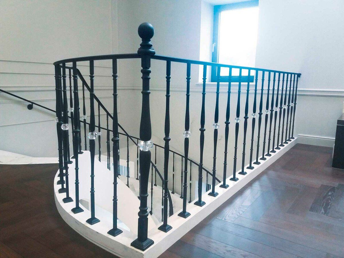 Коллекция " Черный бриллиант " создана на основе элементов ставшей уже классической коллекции "Рондо". Монохромный черный матовый цвет столбов и балясин подчеркивает их сдержанность и изящество. Сверкающие вставки кристаллов SWAROVSKI придают им блеск и благородство, а также делают их идеальным декором для интерьеров премиум класса. Окончания стоек и столбов изготовлены из высококачественной стали. Это позволяет при сборке ограждений использовать сварку. Для поддержания монохромного черного цвета окончания красятся в тот же цвет. Дизайн этой коллекции идеально подходит для классических и современных интерьеров высокого класса. Стойки и столбы предназначены для установки внутри помещения. При создании комбинаций ограждений стальные стойки и столбы могут крепиться разными способами. Например каждая стойка или столб крепится в ступень по отдельности. При этом монтажное отверстие в ступени закрывается декоративным латунным основанием квадратной формы. При другом способе крепления стоек и с