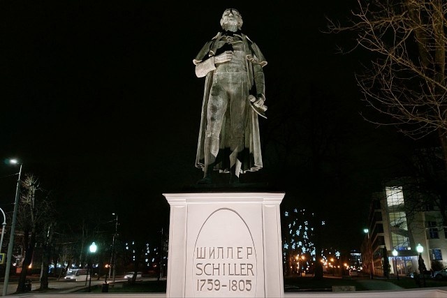 На проспекте Мира в Калининграде установили подсветку памятников Шиллеру и Петру I