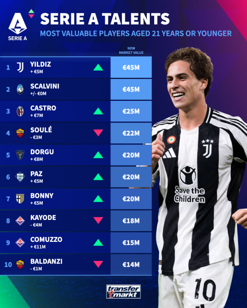 Окончательное обновление рыночной стоимости Серии A 2024 года было выпущено в среду днем, и обновления получили 580 игроков. Это была захватывающая первая половина сезона в итальянской высшей лиге, когда всего шесть очков отделяют пять лучших клубов. Аталанта в настоящее время лидирует, но я думаю, что "Милан" остается фаворитом в борьбе за сохранение своего Скудетто, а Антонио Конте возродит Наполи, поскольку он стремится выиграть исторический титул с третьим другим клубом. Обладатель Лиги Европы «Аталанта» и «Фиорентина», ставшая неожиданной сенсацией, значительно увеличили свою рыночную стоимость, в то время как стоимость команд «Ромы» и «Милана» снизилась. Несмотря на то, что общая стоимость «Милана» снизилась, Тиджани Рейндерс стал самым дорогим игроком, его рыночная стоимость выросла с 20 до 50 миллионов евро, а «Манчестер Сити» следит за голландским полузащитником. Серия А не славится тем, что выращивает молодых игроков до уровня Лиги 1 или Бундеслиги, но некоторые талантливые н