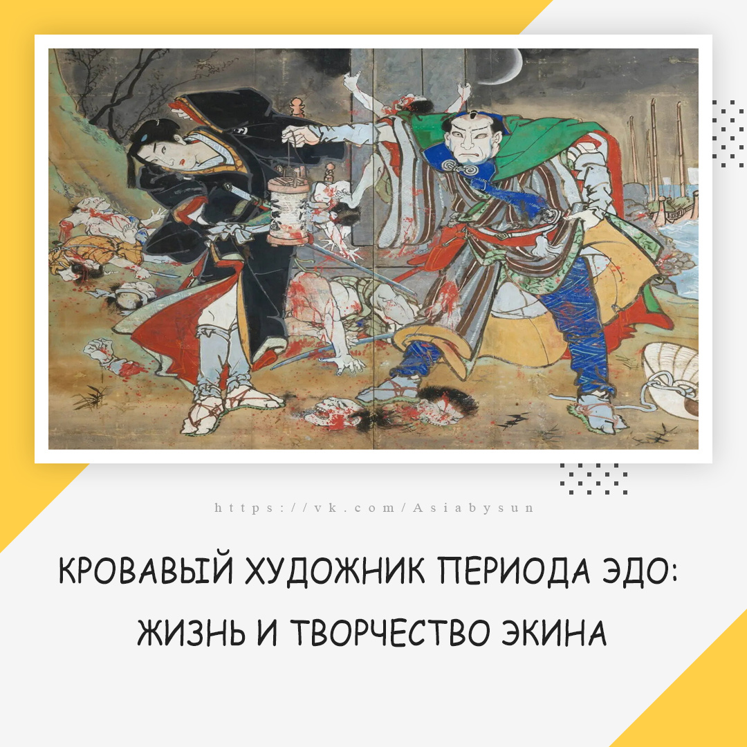 Когда мы вспоминаем искусство периода Эдо, оно, скорее всего, не ассоциируется у нас с кровью, сексом и жестокостью, которые можно найти в работах Экина середины 1800-х годов. На протяжении многих лет этот выдающийся художник был известен под разными именами, но обычно его помнят как Экина. Его первоначальный успех был сведён на нет, когда его якобы обвинили в подделке картин. После скандала и таинственного исчезновения на 10 лет Экин вернулся и вошёл в мир театра Коти. Сосредоточившись на самых ужасных сценах в пьесах кабуки, он произвёл кровавый фурор в мире театрального искусства своими кровавыми и непристойными картинами, которые, дополненные дерзким остроумием, покорили его зрителей. Экин, родившийся в 1812 году, также известный как Кинзо Хиросэ, а также под многими другими именами, начал рисовать с юных лет. В 16 лет он учился у известных художников и за 3 года завершил то, что должно было стать 10-летней программой обучения. Затем он служил художником у аристократов, живших