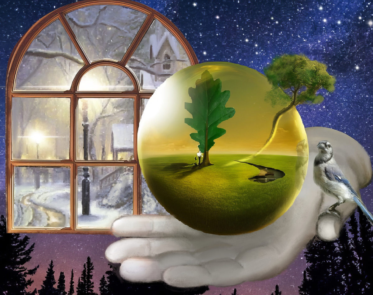 Вечер. На улице зима. Снует туда сюда неугомонный ветер. Под светом уличного фонаря снежинки то и дело блещут, врезаясь в глянец застывшего окна. Я сквозь него, свет притушив, слежу за жизнью зимнего двора. Багаж не распакован с самого утра, так увлеченно наблюдаю я за тем, чего бы ранее не заметили глаза. Как запоздалый лист летит последний с высокой ветки дерева. А ведь почти закончилась зима, по всем законам, что нам расписаны природой, лист должен быть сухой, а не зеленый! Но он живой еще! Вертясь, крутясь от ветра, спускается он на застывший образ фонаря, что отпечатался на ледяной прозрачной корке льда. Я дернулась, увидев вдруг прохожего. Вот-вот наступит на него носком начищенного башмака! Но нет, башмак пронесся мимо, коснувшийся его едва порывом воздуха, и сдвинул в сторону. Подумала тогда, что он не отпускает жизнь, иль жизнь, почуяв в нем неведомую силу, его не отпускает. Вокруг него история уже сюжет слагает: народ, под носом не заметив дива, спешит, гуляет и проходит мимо