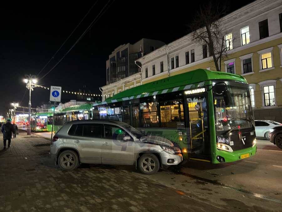 Очередное ДТП с пассажирским общественным транспортом зафиксировано вечером 26 декабря в центральной части Курска. По предварительным данным, на улице Ленина возле гостиницы «Октябрьская» столкнулись автомобиль «Фольксваген Тигуан» и зеленый городской автобус. Из-за этого временно затруднено движение. Обстоятельства дорожного инцидента и информация о пострадавших уточняются. Сергей Яшин, фото Антона Филиппова Постоянный адрес новости на сайте «Друг для друга» ~ https://dddkursk.ru/lenta/2024/12/26/114843/. Новости Курска за ~ 26 декабря ~ декабрь 2024 года.