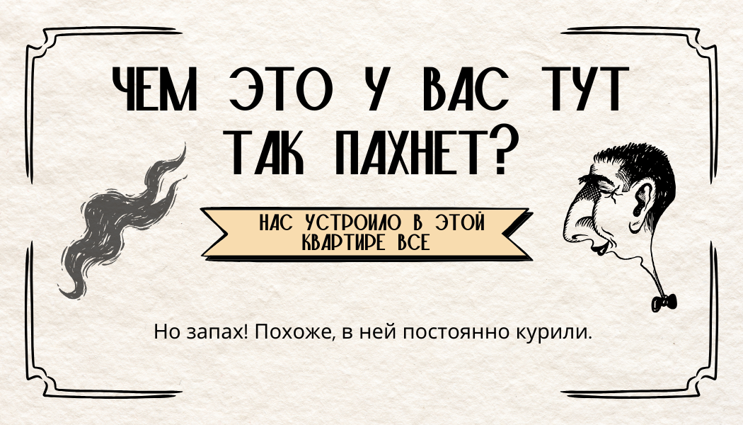 "Юля, нас устроило в этой квартире все: и расположение, и планировка. Даже состояние неплохое. Но запах! Похоже, в ней постоянно курили. Застарелый запах дешевого табака въелся в обои, в деревянные межкомнатные двери. Он там везде! Мы не сможем жить в такой квартире." - эмоционально рассказывает мне мой клиент - покупатель. "Юля, мы никогда не продадим эту квартиру с проживающим в ней дедушкой. Запах табака и старости везде. Особенно в спальне. Покупатели приходят, разочаровываются и уходят." - сообщает мне агент - мой сотрудник. "Эти квартиры только на фото выглядят, как будто в них сделан хороший ремонт. Ты бы понюхала, чем там пахнет! Это отвратительно. Почему ни продавцы, ни агенты не заботятся о запахе в продаваемых квартирах?" - спрашивает другой клиент-покупатель. Так часто последнее время слышу про запахи, что поняла, пора написать об этом неочевидном моменте. Если быть совсем честной, во всех квартирах изначально пахнет не очень. Особенно, если владельцы специально о запахе не