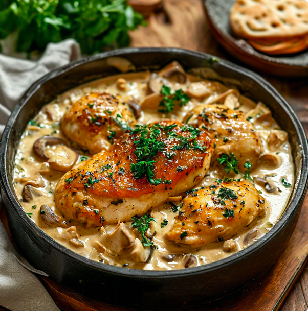 Вкусный ужин: Курица в сливочно-грибном соусе с ароматными травами