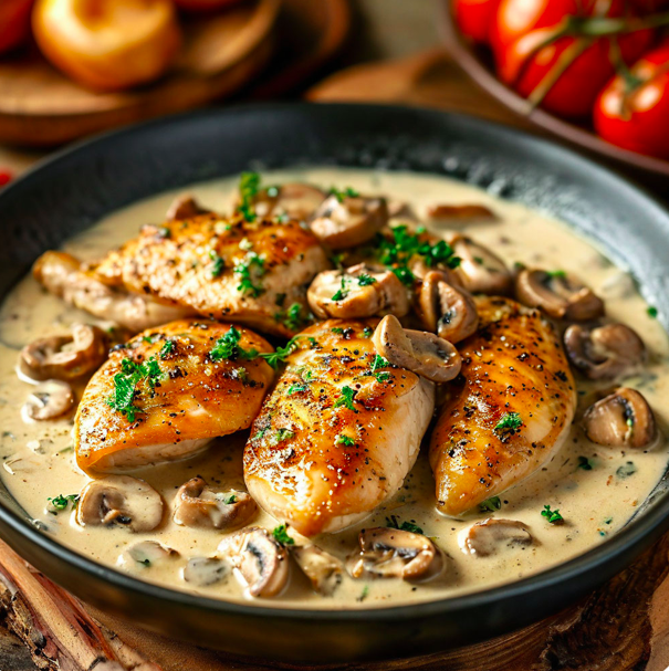 Вкусный ужин: Цыпленок в сливочном соусе с грибами