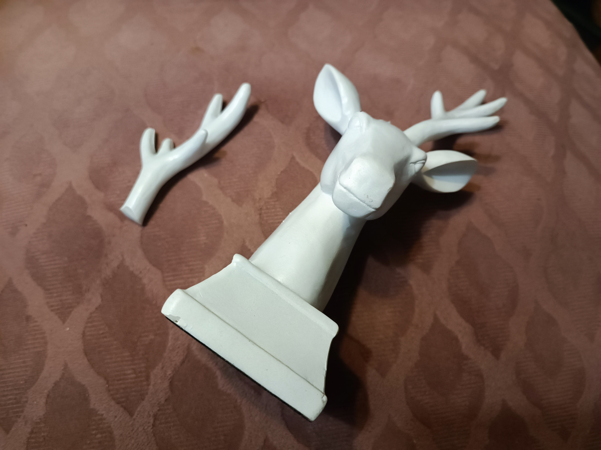 Этот подсвечник-оленя я планировала сделать ещё в прошлом году. Очень уж мне нравятся подобные штучки, но не нравится их цена - в среднем от 1500 рублей. Но не успела. Переделала лишь тогда керамических оленей из Фикс Прайс. А бедный олень из Фикс Прайс из полирезина (их продавали в ФП пару лет назад, меньше, чем за 200 рублей) так и остался не у дел. Ещё и рог потерял😂 Но в этом году я неожиданно лишилась своих любимых новогодних подсвечников -шишек из H&M, стала искать им альтернативу и вспомнила про оленя-инвалида😂 Для создания подсвечника мне потребовались: Все материалы у меня были в наличии - оставались от других проектов - так что бюджет создания подсвечника вышел в 0 рублей. Первым делом я вернула оленю рог, приклеив его на Кристалл. В качестве держателя я решила использовать защитный колпачок от радиаторов: при случившемся летом в доме капремонте системы отопления у нас до сих пор весь подъезд завален этими колпачками, которые снимали с новых батарей перед тем, как приварить
