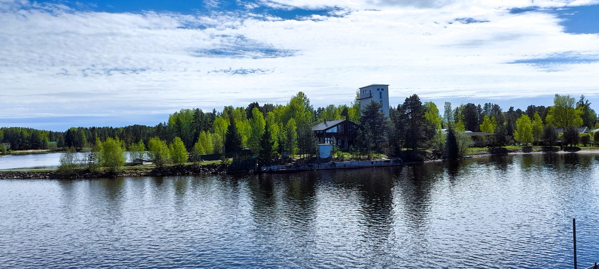 Поднявшись в шлюзовой камере на 14 метров мы попадаем в Верхне-Свирское водохранилище. Далее на протяжении 90 км от Подпорожья до Вознесенья практически отсутствуют населенные пурнкты. Они попали в зону затопления водохранилища и были перенесены дальше от берега. Остались только те, что стоят на высоких скалистых склонах горной гряды, соединяющей Олонецкую и Вепсовскую возвышенности.
