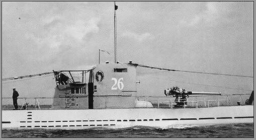 U-26 с новым командиром была затравлена 1 июля 1940 года совместными действиями кораблей и авиации противника. На снимке «Сандерленд», пилотируемый лейтенантом В. Н. Гибсоном из 10-й эскадрильи Королевских ВВС, совершает вторую атаку на U26 к юго-западу от островов Силли.