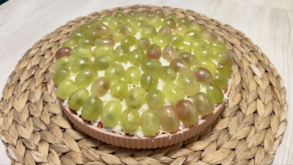 Ингредиенты: Приготовление: Собираем слоями в форму или блюдо. 1 слой : Разминаем горбушу вилкой, смазываем майонезом. 2 слой : на мелкой терке трем сыр, смазываем майонезом. 3 слой : трем желток на мелкой терке, смазываем майонезом. 4 слой : мелко нарезаем крабовые палочки, смазываем майонезом. 5 слой : трем белок на мелкой терке, смазываем майонезом. 6 слой : виноград нарезать на половинки и разложить на салат. Это очень вкусный салат! Обязательно приготовьте его на Новый год🎄 Приятного аппетита! На нашем канале каждый день новые рецепты, подписывайся чтобы не потерять😊