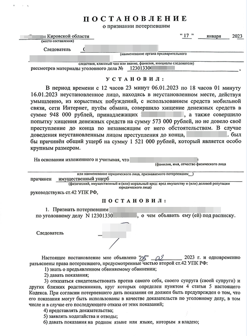 Говорим Мы всем своим клиентам и их семьям перед новогодними праздниками. Можете увидеть, что за последнее время мошенники усовершенствуют каждый день свои планы на всех нас, умудряются бить в самое больное—наличные денежные средства и банковские карты. С каждым днем краж становится больше через информационную сеть Интернет, они: Напомним, что точно так же нашего клиента Е. обманули мошенники (см. Постановление выше) ➡️У Вас случилась такая же ситуация, на вас повесили кредиты или манипуляцией заставили перевести деньги и не знаете, что же делать? ❗️Будем ждать на нашей БЕСПЛАТНОЙ консультации. Звони