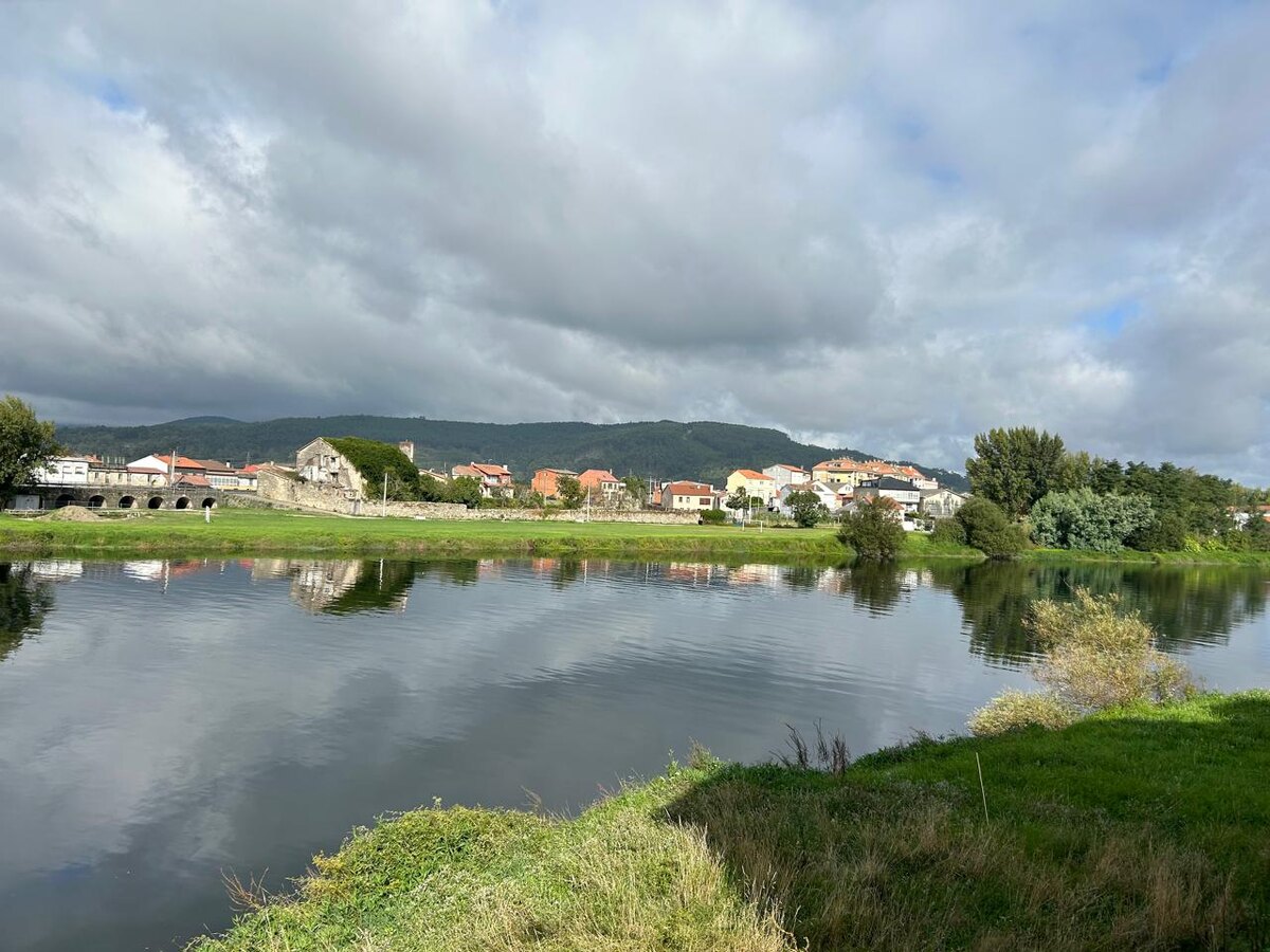 Свой путь, как обычно, я начала одна. День был достаточно пасмурным, да и в целом виды не отличались особой красотой. Путь начался вдоль основной дороги, а далее продолжался через поля. Я все ближе приближалась к Сантьяго де Компостела, а на пути все больше становилось пилигримов. Уже редко встречались одиноко идущие люди, скорее большие громкие компании. Тем ни менее судьба снова столкнула меня со знакомым человеком. Пока я останавилась на перерыв, меня догнал Таха. Таха был одним из тех людей, общение с которыми ощущалось, как будто я знала его очень давно. Будто мы давние друзья, которые могли поделиться друг с другом чем угодно. Темы лились и менялись так быстро, что я порой забывала, о чем мы говорили минуту назад. Такое приятно общение на пути также помогает перестать высчитывать пройденные километры и обращать внимание на боль в ногах. Время начинает идти быстрее. Спустя некоторое время мы повстречали Сашу и пошли уже втроем. Путь снова шел возле трассы и немного нас огорчал.