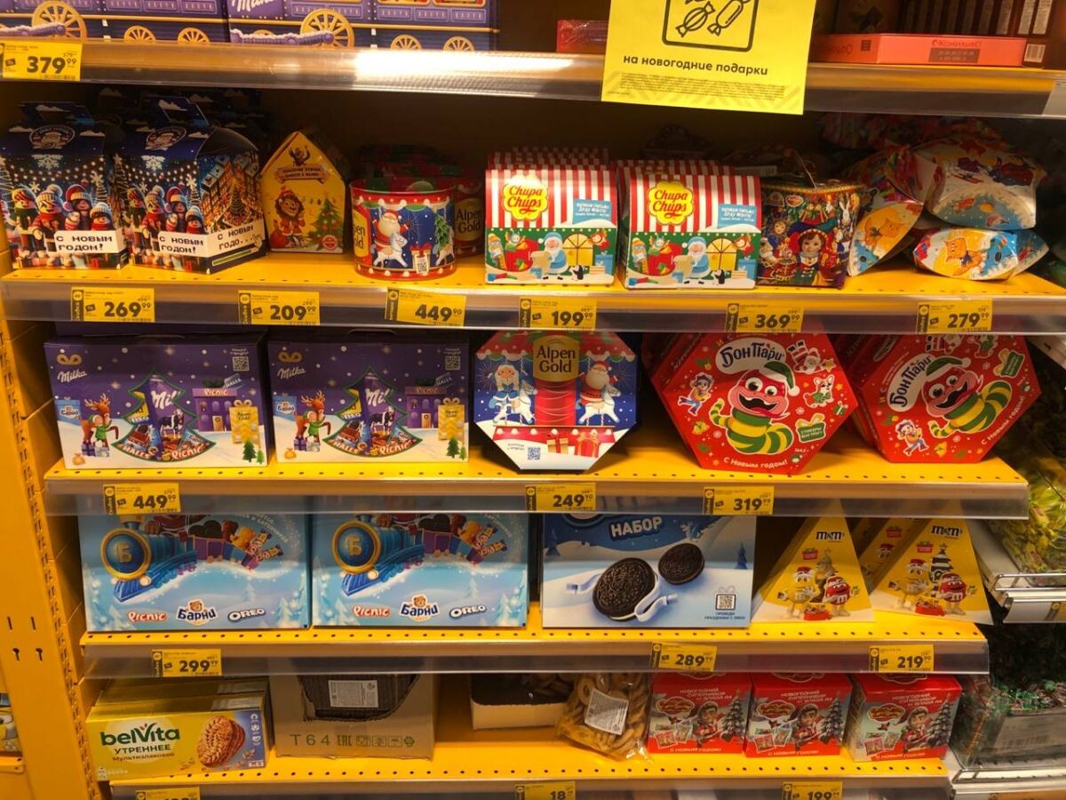 С приближением праздников многие из нас начинают задумываться о подарках для близких и друзей. Сладкие угощения всегда были популярным выбором, ведь они способны поднять настроение и перенести в детство. Однако цены на такие подарки вызывают особый интерес. Корреспонденты "РН" провели мониторинг в магазинах города и готовы рассказать, какие сейчас цены на сладости и как выбрать идеальный подарок, не потратив при этом целое состояние. Мы рассмотрели цены на подарочные наборы шоколадных конфет в "Перекрестке", "Магните", "Пятерочке", "Самокате", "Ашане". В "Перекрестке" цены на сладкие подарки начинаются с 289 рублей за 125г, за 499 рублей можно купить 500г кондитерских изделий "Любимых с детства", а одним из самых дорогих является набор от Kinder, за 137 грамм лакомства и плюшевого медведя придется отдать 989 рублей. Магазин "Магнит" также подготовился к новому году, самый бюджетный подарок стоит там 249 рублей за 73 грамма, за 349 рублей можно купить набор всем известных конфет Twix, S