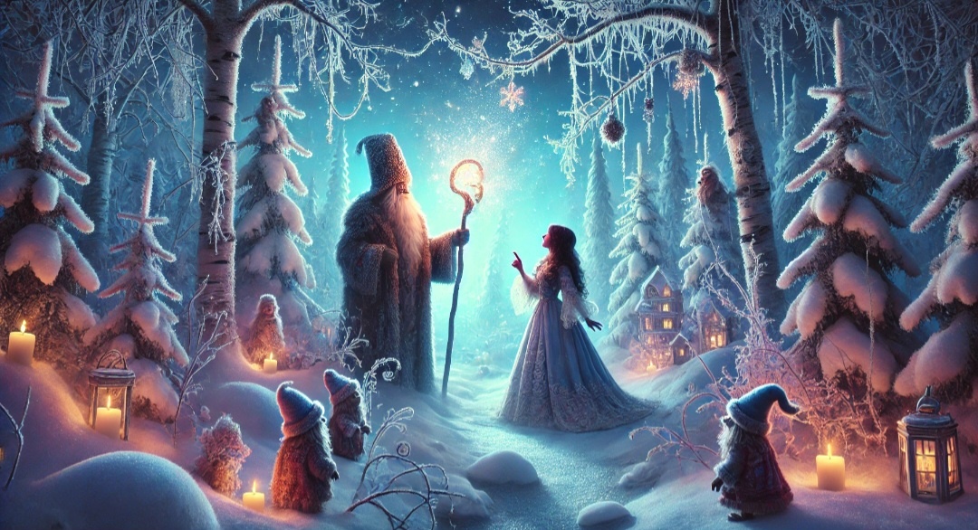 Предновогодняя история. "Новогодние проделки дедушки Мороза" Запись от 31 декабря, четверг. Говорят, зима — время покоя для ведьм. Не тут-то было. Едва закончила печь праздничные пряники, как в окно постучали. Открываю, а там снежинка! И не простая: вертится в воздухе, сияет, а потом превращается в записку, прямо мне на ладонь. "Ведьма Аглая, беда в лесу. Мороз силой своей не сдержал. Если не придёшь — зима станет вечной." Весёлая перспектива. Тяжёлый вздох, мешок на плечи, свечу в карман — и в лес. Новый год теперь праздновать буду среди сугробов, а не в уютной кухне. Лес встретил меня настороженно. Все деревья покрыты толстым слоем льда, дороги скользкие, даже вороны притихли. Пройдя к знакомой поляне, я увидела дедушку Мороза. Тот сидел на поваленном дереве, тяжело дышал, а вокруг него снег вился в бешеном танце. — Ты как это допустил? — спросила я, сложив руки на груди. — Да сам не понял! — простонал дед. — Кто-то украл мой посох. Без него мне теперь силы не сдержать, вот и буря