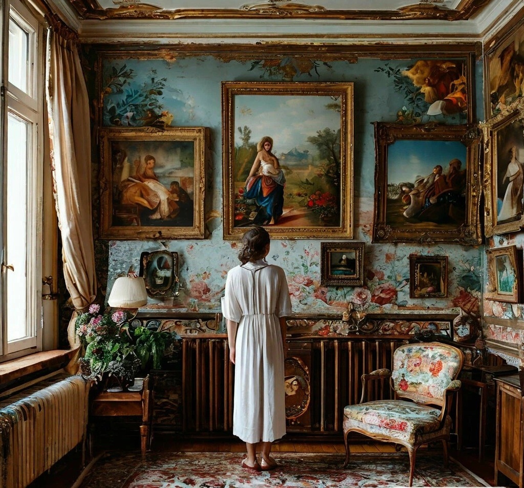 Я взял из серванта ключи от квартиры (тот перед отъездом в санаторий попросил, чтобы я поливал его бегонии). Поднялись наверх. Лишь только моя любимая переступила порог громко ахнула от восторга, увидев в прихожей какую-то абстрактную мазню. Затем не менее восторженно повизжала перед каким-то унылым пейзажем. Когда же вошли в гостиную замерла.
