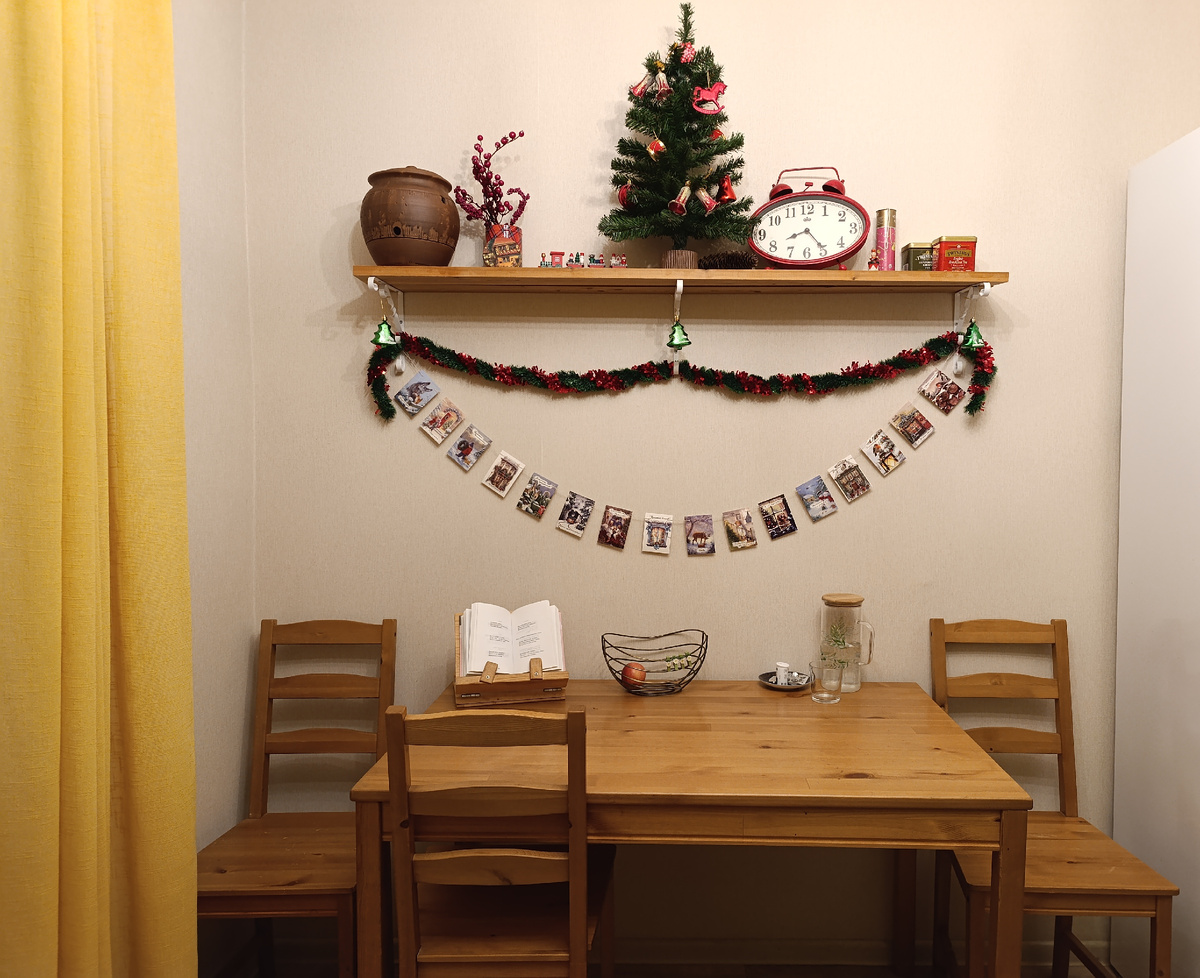 Накануне (ещё позавчера) я украсила городскую квартиру. Создала новогоднюю экспозицию на кухне.