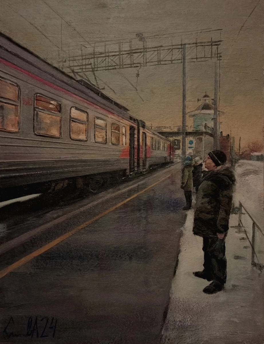 В одной из групп социальной сети ВКонтакте мне попалась такая работа, датированная 2024 годом. 1. Пейзаж на картине весьма характерен для современной России. Электропоезд в современной корпоративной окраске РЖД, перрон, пассажиры. Автором работы является Алексей Симонов, а выполнена она на ДВП из жидкого... пластилина. Работа называется "Электричка". Такая техника создания картин называется пластилинографией. В работах используется скульптурный пластилин, который придает фактурность работам и некоторую загадочность. Алексей занимается созданием работ в технике пластилиновой живописи свыше 15 лет. Алексей Симонов 1979 года рождения, родился и проживает в Свердловской области, в городе Кировграде. В Екатеринбурге он окончил отделение декоративно-прикладного искусства Уральского педагогического университета. Предлагаю посмотреть ряд его работ. Название одних нашел, других, увы, нет. 2. "Коммунальщик", 2022 год. 3. "Декабристов. Апрель. 20.00", 2018 год. 4. "Екатеринбург. Центр", 2021 год