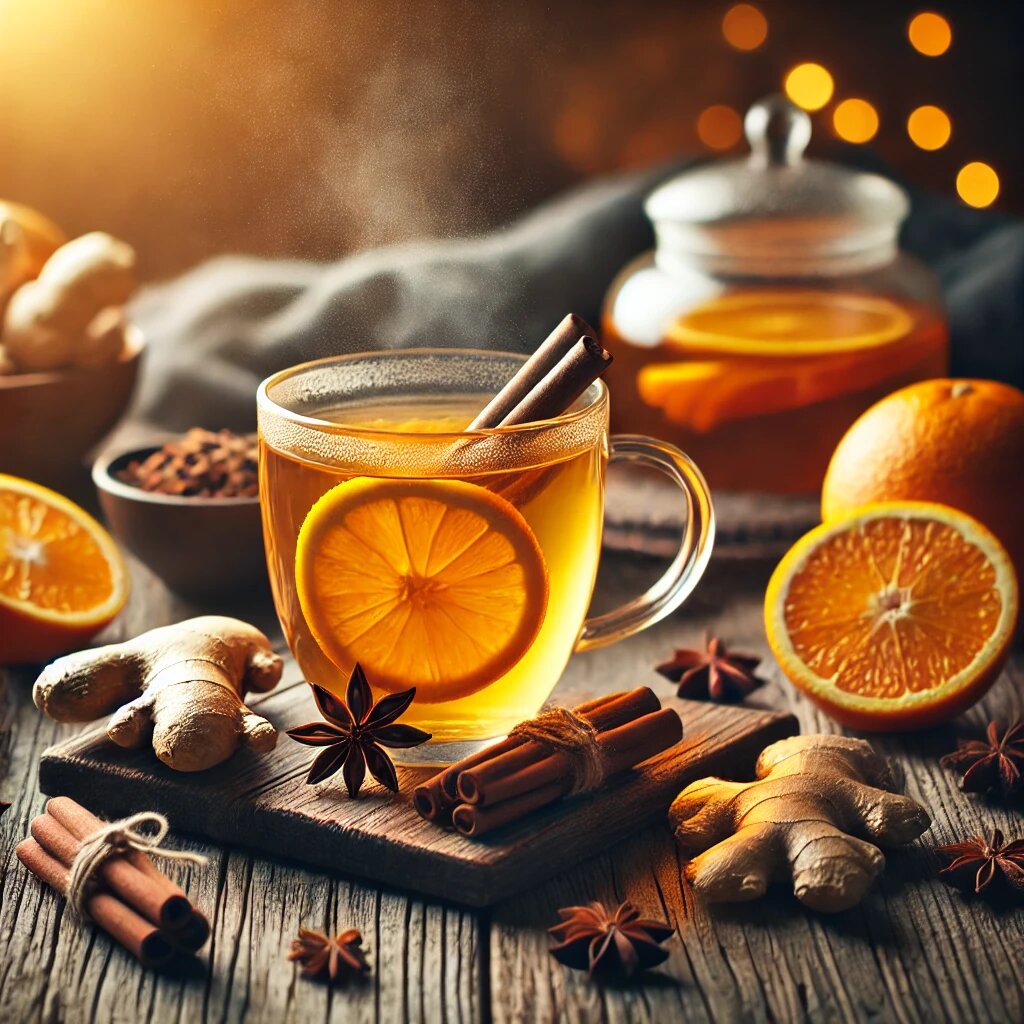Приготовление: Заварите кусочки имбиря с дольками апельсина, добавьте мед и несколько листиков мяты для свежести.