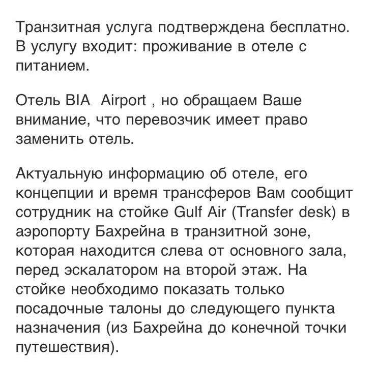 Авиакомпания Gulf Air предоставляет возможность транзитной пересадки с организацией STPC номера в отеле, питания, а также трансфера и визы, если ваш отель вне аэропорта.