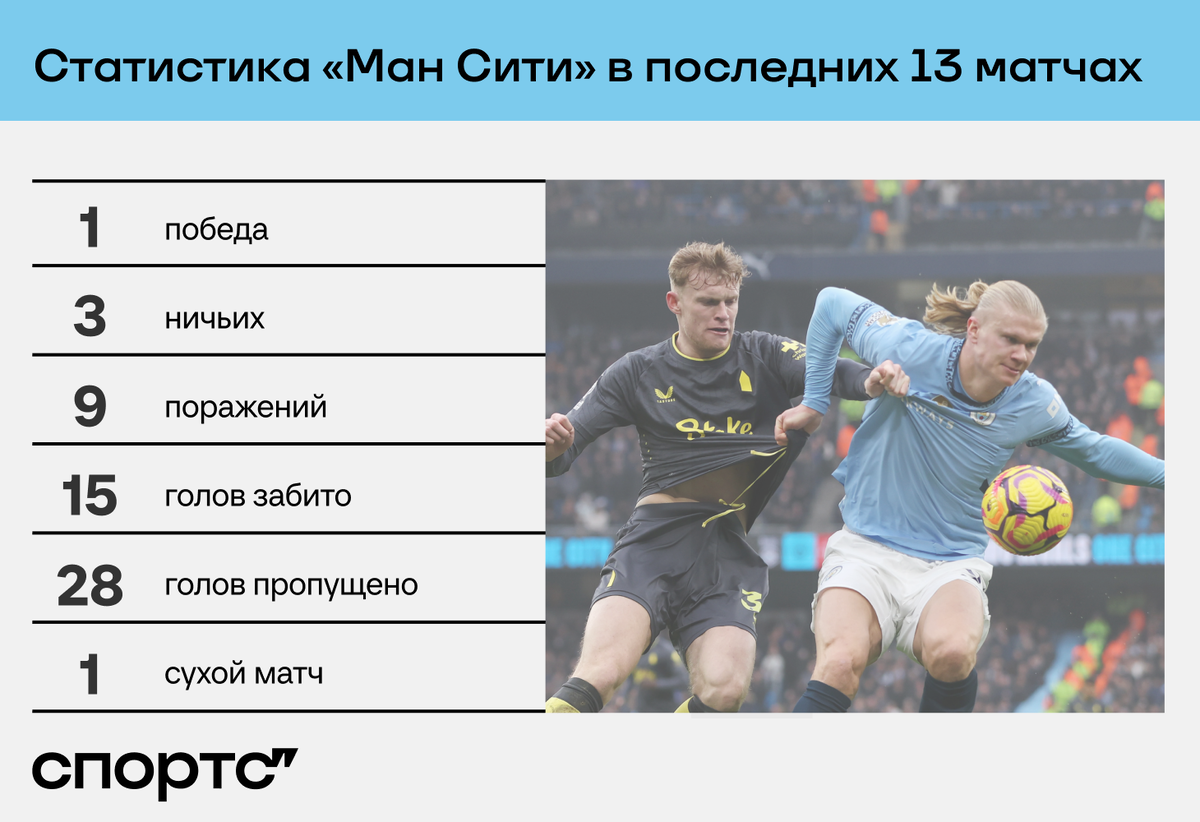 «Сити» в зоне вылета по результатам с ноября. Меньше очков не набрал никто