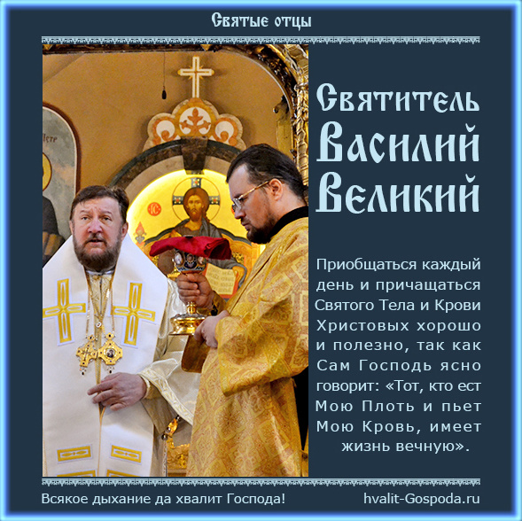 Святитель Василий Великий о Причастии: “Приобщаться каждый день и причащаться Святого Тела и Крови Христовых хорошо и полезно, так как Сам Господь ясно говорит: «Тот, кто ест Мою Плоть и пьет Мою Кровь, имеет жизнь вечную»”. Читать на сайте>> Если Вам понравился материал, поддержите проект лайком, перепостом или посильным переводом на карту СБ 5336690117772279. С благодарностью молюсь о всех жертвователях.