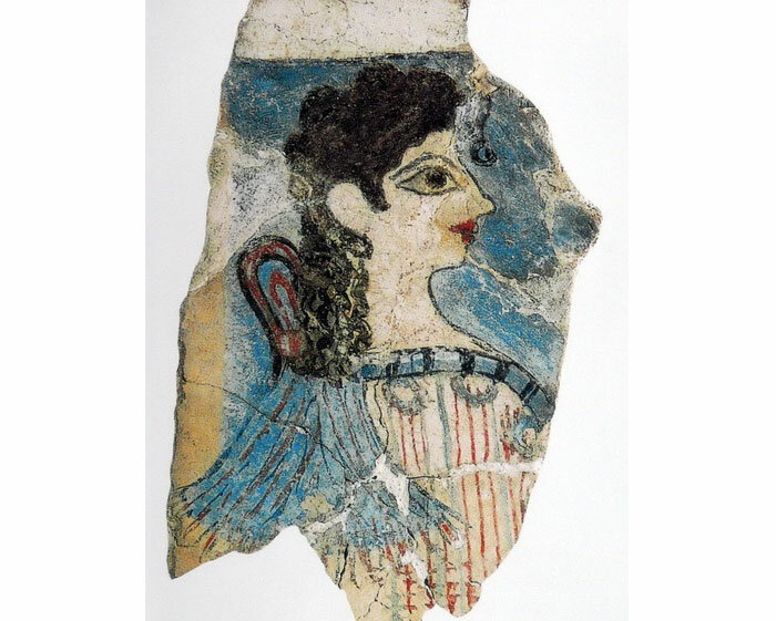 Когда вы впервые смотрите на нее вас посещает чувство радости и желания любоваться красотой и молодостью. А ведь действительно с очень древней фрески, примерно XV в. до н.э. на нас смотрит удивительная красавица. Юная особа, с красиво уложенными черными кудрями, белой словно фарфоровой кожей, алой помадой и кокетливо-изящно свисающим на лоб локоном. В красивом с великолепным бантом хитоном восседает в пиршественном зале. Сразу видно девушка со вкусом) Ее нашли при раскопках древнего Крита. Французский археолог и искусствовед Эдмон Потье работавший на раскопках под руководством Артура Эванса сразу заметил это удивительное сходство с девушкой изображенной на древней критской фреске и его современницами из Парижа и окрестил найденное изображение «Парижанка» с тех пор так все ее и называют. Парижанка, также известная как La Parisienne, так её назвал археолог Артур Эванс — фреска Кносского дворца, датированная примерно XVI—XV веками до н. э. Сейчас является одним из центральных экспонато