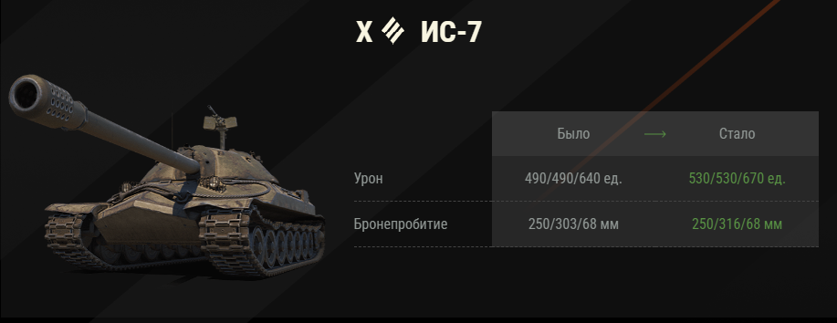 Танкисты мы ждали этого два года, нет четыре года! Об ИС-7 наконец-то вспомнили разработчики. И кстати сделали всё так как и нужно было, единственное что про бронирование башни у маски забыли, но ничего. Деду подняли урон с выстрела до 530 на основном и голде и 670 на фугасных снарядах. И совсем немного подняли пробитие голдой до 316 мм. Данный ап не может не радовать. Огромное спасибо разработчикам!