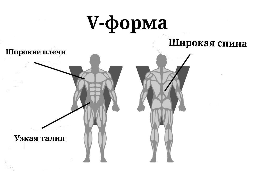 В тренажерном зале существует группа людей, в которой спортсмены имеют похожие запросы: построить эстетичное тело, набирать мышечную массу и сжигать жир одновременно, стать похожим на “того парня из видео” и др. И зачастую под всеми этими запросами скрывается одно: построение V-образной формы тела. V-образная форма представляет собой узкую талию и наличие “сикс-пэка” (6 кубиков пресса) за счет низкого процента жира + широкие плечи и спина, что и делает форму более впечатляющей. Разберем, каким образом построить программы тренировок и питания так, чтобы в конце концов можно было прийти к желаемому результату.