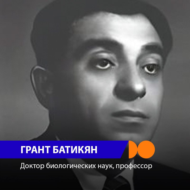 Грант Георгиевич Батикян – заслуженный деятель наук, доктор биологических наук, профессор Батикян родился в 1909 году в семье учителя, в 1926 году поступил на сельскохозяйственный факультет ЕГУ, а в 1930 году – в аспирантуру Всесоюзного селекционного института. Уже в 1936 году он защитил кандидатскую, а в 1950-ом – докторскую диссертацию. В 1951 году ему было присвоено звание профессора. Сначала Батикян работал старшим научным сотрудником Всесоюзного селекционного института в Ленинграде. Потом он вернулся Армению и принял активное участие в создании Армянского отделения Академии наук СССР. Грант Батикян читал лекции в ЕГУ и в Сельскохозяйственном институте. Также несколько лет биолог проработал старшим научным сотрудником в Институте генетики при Армянской Академии наук. 30 лет Батикян возглавлял кафедру дарвинизма и генетики ЕГУ, в 1963 году основал и возглавил проблемную лабораторию цитологии. В 1950 - 1963 и 1968 - 1978 годах он стал деканом биологического факультета ЕГУ. Благодаря