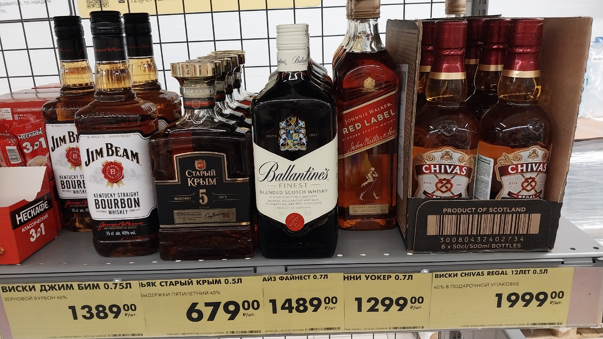 У кассы можно выбрать виски или коньяк.