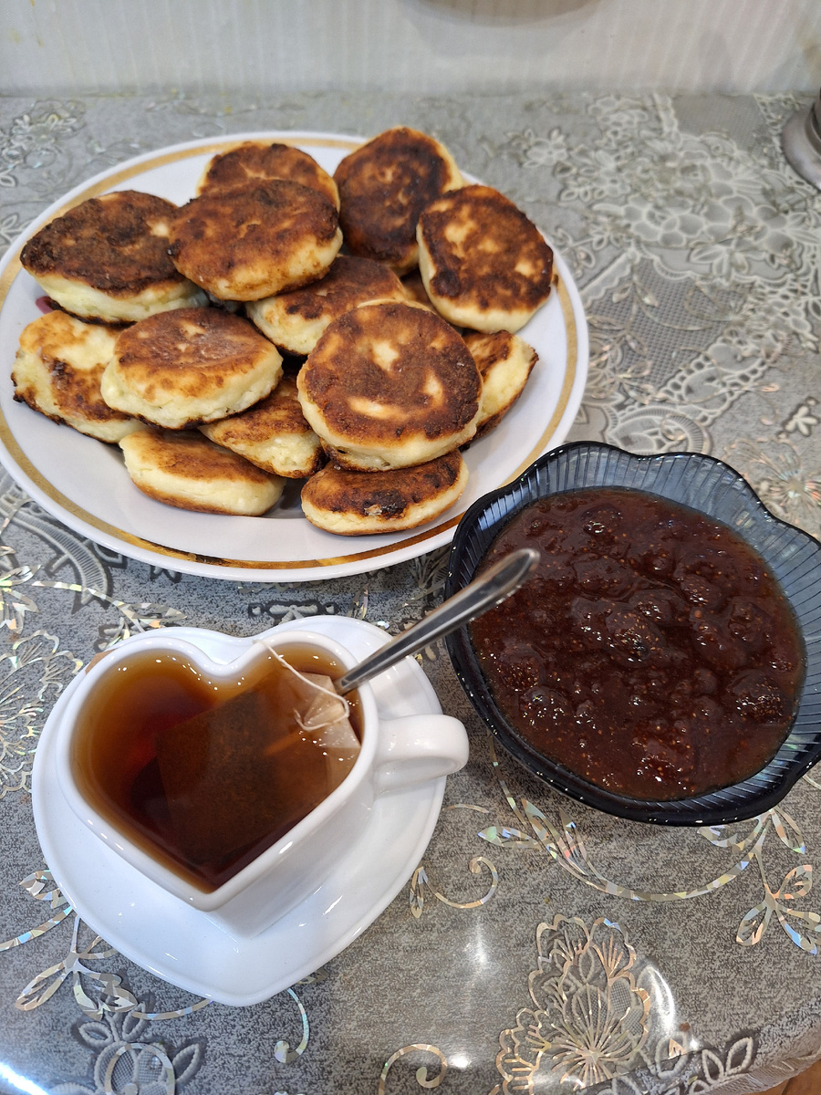 Творог люблю только в выпечке: Сочни, сырники, ватрушки, слойки с творогом, запеканки)) 🧇 Со сгущёным молоком, сметаной вареньем. А сегодня у меня сырники. 🥞 Главное понять какие ингредиенты для хорошей выпечки нужны: Так сказать основа, затем уже можно варьировать с количеством или заменой продуктов в зависимости от того, чего хотите добиться. Яйца - для скрепления теста, Сода - для пышности, разрыхления, Если добавить сметану в тесто или масло сливочное, будет более сдобное тесто и т.д. А вот мой рецепт сырников: Намочим руки водой и начинаем формировать сырники. Затем, обваливаем каждый сырник в муке И кладем жариться в сковороду с нагретым подсолнечным маслом. Ву а ля сырники готовы! Приятного всем аппетита! 😋 #сырники#творожники#сочни#ватрушки#слойка с творогом#запеканка#