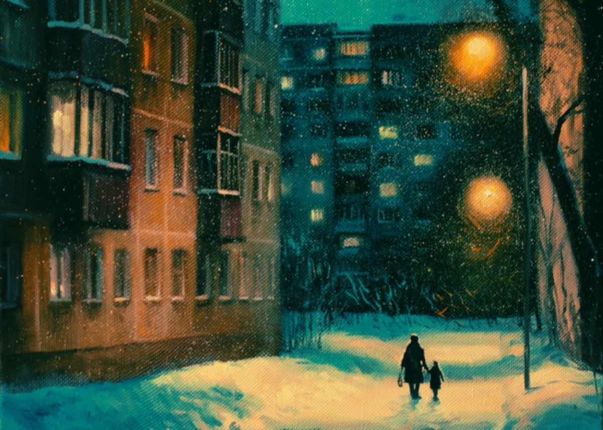 Падал медленный снег. Вдали он превращался в сказочное месиво и Тёмка шагал, держась за сумку мамы и вспоминал о сказочном снежном королевстве. Наверное там, в клубах этого снега и прячется то самое королевство.