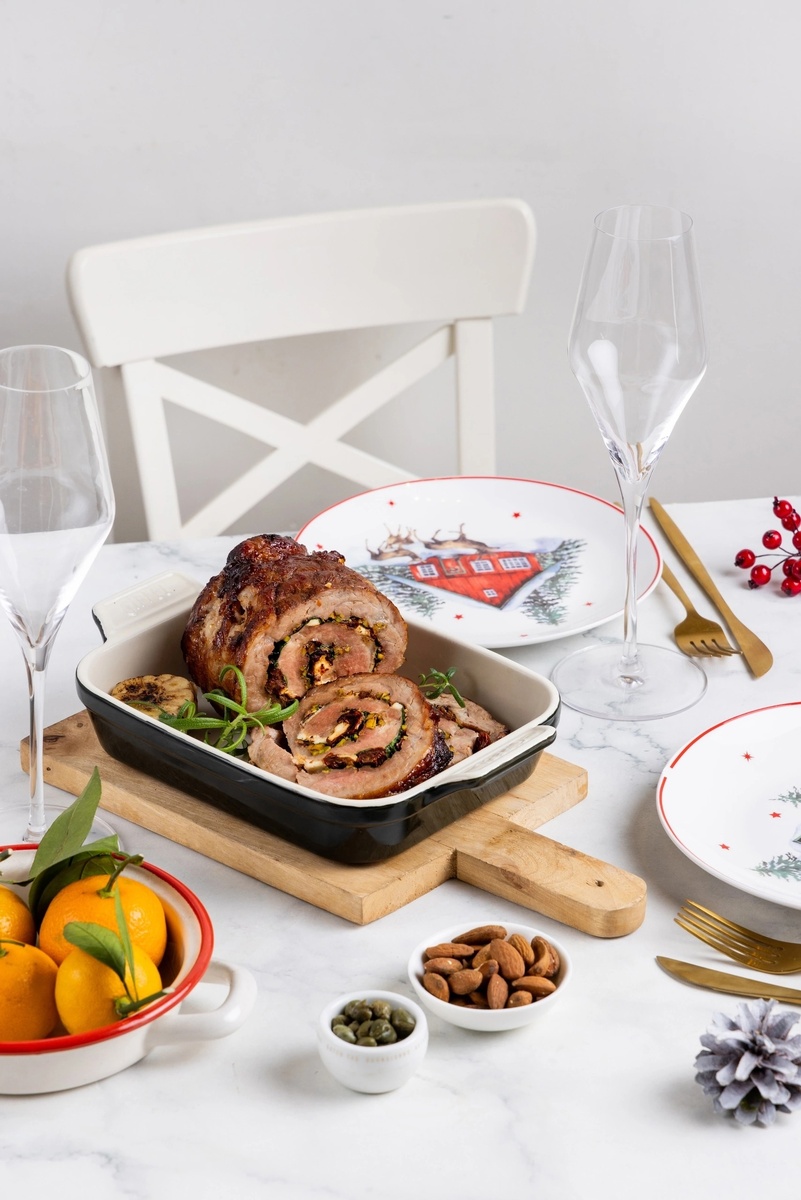 Хотите в Новый год удивить гостей эффектным горячим блюдом? Предлагаем приготовить рулет из свиной шейки, фаршированный шпинатом и вялеными томатами. Рецептом с нами поделился шеф-повар Олег Томилин. Чтобы рулет получился сочным и таял во рту, используйте свиную шею АГРОЭКО. Она отличается нежным вкусом за счёт тонких жировых прослоек. Итак, вам понадобится: - свиная шея АГРОЭКО — 2.5 кг;