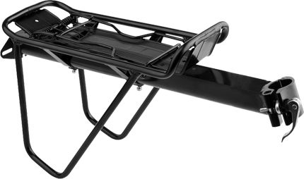 Из числа багажников можно выделить отряд «консольных». Эти багажники крепятся только в одной точке — к подседельному штырю, и рассчитаны на вес до 25 кг. Впрочем, реально они годятся для гораздо меньшего веса. Причина возникшего несоответствия в разном подходе нас, жителей России, и «людей с запада», которые эти багажники делают. Одно дело, если велосипедист с грузом катит себе спокойно по гладким велодорожкам Бельгии — что ему будет? Другое дело, если вы с тем же весом на багажнике попадаете в выбоину, к примеру, на Кондратьевском проспекте в Петербурге. В этом случае будут многократные перегрузки. Попадете в выбоину 5—10 раз — и останетесь без багажника. Консольные багажники относительно быстро снимаются. Их можно снять прямо с подседельным штырем и седлом. Но в целом, их можно использовать, если нагрузка на багажник не будет превышать 8-9 килограмм. Второй вариант — если у вас велосипед, к которому конструктивно не предусмотрены варианты установки багажников других типов, например, «двухподвес».